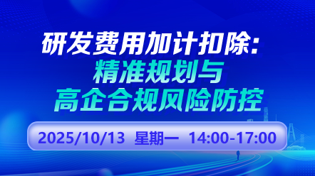 财税直播课-25年10月13日直播:研发费用加计扣除:精准规划与高企合规风险防控